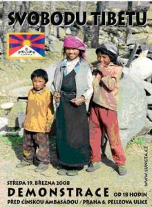 Ve středu 19.března od 18 hod. proběhne další demonstrace před čínskou ambasádou v Pelleově ulici na Praze 6, která reaguje na současnou situaci v Tibetu. Podpořte svobodu Tibetu svojí účastí na této demonstraci.