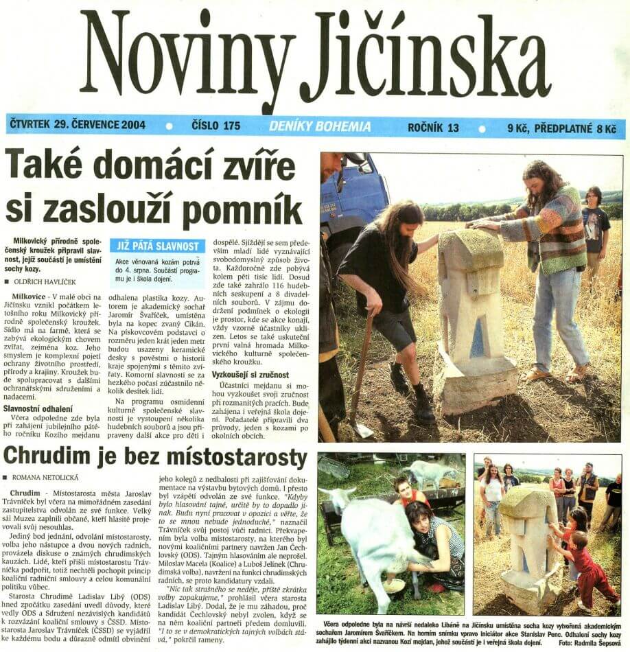 Způsob umístění:na pískovcoví podstavec 2x1m umístit soch ak. sochaře Jaromíra Švaříčka Na podstavec sochy na keramických deskách umístěny texty s pověstmi a historii kraje spojené s kozami. Kolem sochy ze tří stan vysadit buky – potomky pamětního buku  přes 500 let starého, ( okolo 40 metrů vysokým a širokým, přes 550 cm v objemu okolo 40 m vysoký) donedávna rostoucího u nedalekého rybníka Ervína.